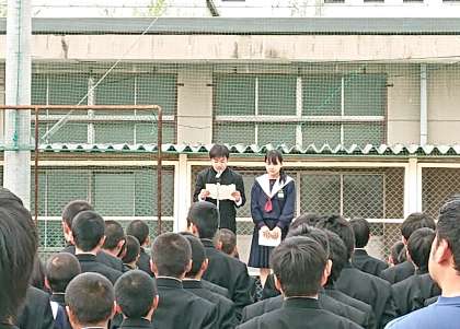部活動集会を行う目的や、新北島中学校の部活動生として【あいさつ・整理整頓】を全体共通のモットーとしていくことなどの話がありました。