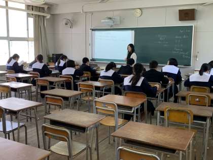 英語は、半分に分かれて少人数で授業をしています。