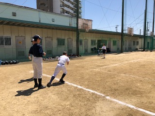 野球部は体重のかけ方や目線を意識した走る練習や、ボールを3つ持って落とさないように走る練習をしています。