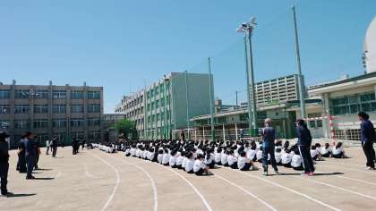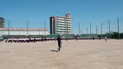 現在、本校のグラウンドは体育館工事の影響で本番の四分の一ほどのスペースしかありません。
