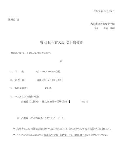 5月24日(金)に実施した体育大会の費用については、以下のとおりとなりますのでご確認ください。