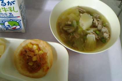 コッペパン(りんごジャム付き)・牛乳