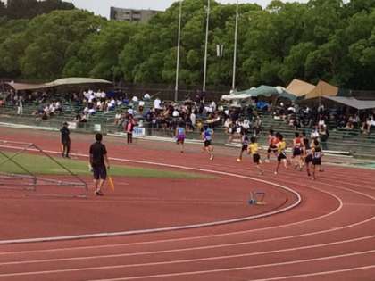 本日最後の種目である男子リレーが終了しました。残念ながら府大会には残れませんでしたが、ベスト更新です!!