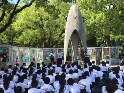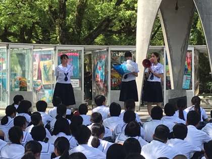 *実行委員企画の元、セレモニーが行われました。セレモニーでは、実行委員からのメッセージの後、原爆の子の像にゆかりのある折り鶴で作ったハトのオブジェの贈呈がありました。