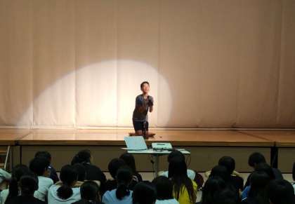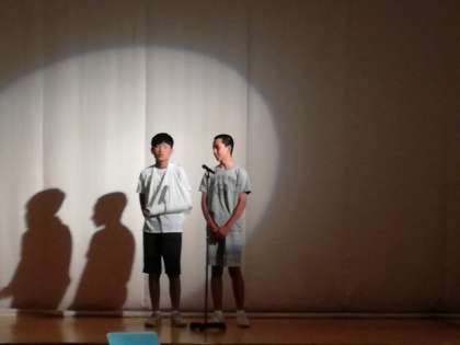 *レクリエーションの様子。有志による漫才、落語熱演中。