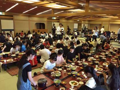 *起床後、洗面や荷物整理をすませて、朝食をいただきました。みなさん、今日の英気を養うために、朝からしっかりと食べていました。
