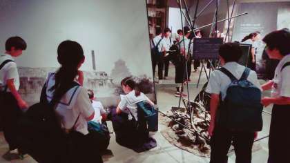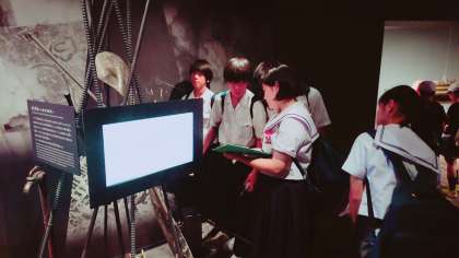 ピース大阪では、たくさんの展示物を見てクロスワードをしています。