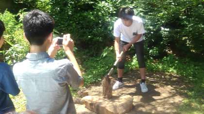 薪割り体験です。