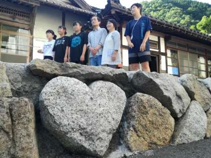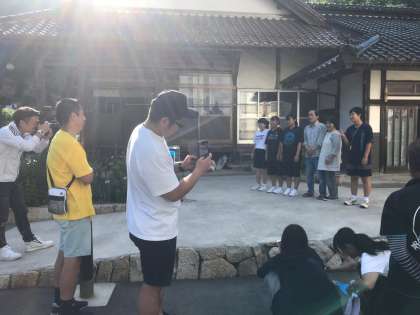 *農家民泊体験の様子。記念撮影の一コマですが、よく見ると…。