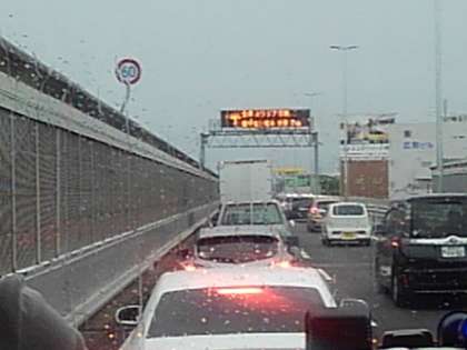 塚本まで、7キロの渋滞です。7時半になるかもしれません。