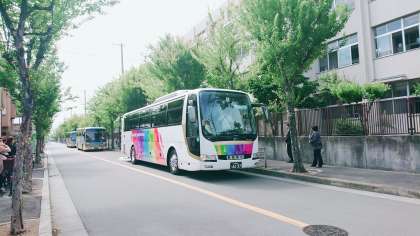 三台のバスに乗り込み、元気に出発しました。
