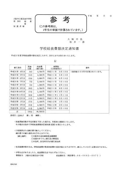 なお、就学援助の認定を受けられている方は、通知額の1/2を徴収いたします。
