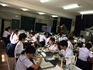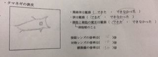 体育の後の理科室は大変でしたが、汗を流しながら、タマネギの表皮を観察しました。