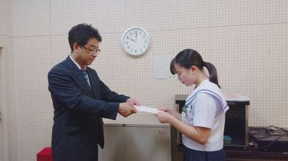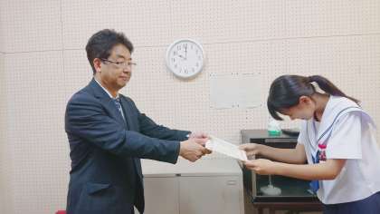 その後、英検二級合格者、おーいお茶の俳句に入選した生徒、演劇部の表彰が行われました。