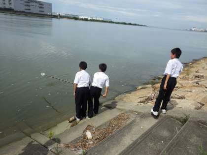 一緒に大和川の水質調査をしてもらい、パックテストの様子なども見ていただきました。最後には活動についてのアドバイスもいただきました。ありがとうございました。