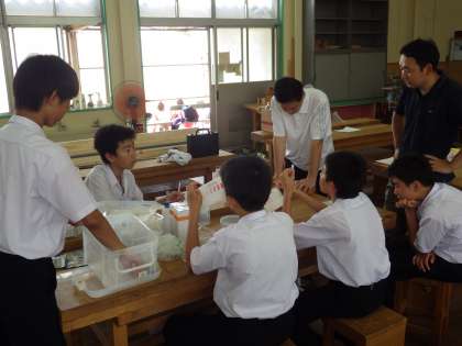 いつもの顧問の先生とは違う雰囲気で、部員には貴重な体験だったと思います。中田中学校の先生は、8月6日に東京大学で行われる河川基金研究成果発表会にも、科学技術部3年生の発表を見に来ていただくことになっています。いろいろな方から意見をいただけるのは勉強になるので、こういう機会を科学技術部員もしっかり活かしてもらいたいと思います。