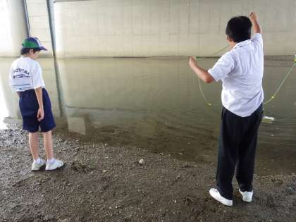 7月25日に、大和川の水質調査を実施しました。今回は4か所での水質を調査しました。暑い中、自転車に乗って大和川沿いに測定を行いました。