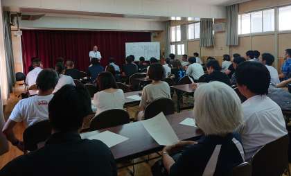50名ほどの先生方が集まり、教科や分野ごとに分かれて情報交換をしました。