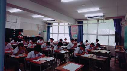 難しい問題があったのか、頭を抱えている人もいます。最後までがんばりましょう。