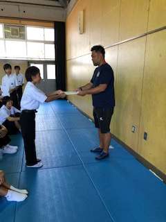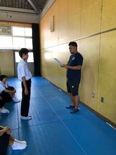 1年生の学年集会で水泳大会の表彰がありました。