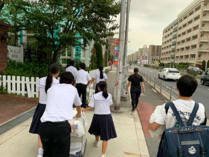 前期生徒会執行部の6名で以前に回収していた牛乳パックをデイリーカナートに持っていきました。