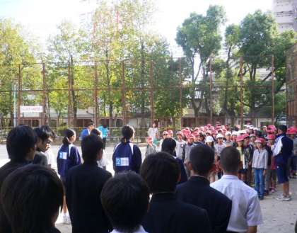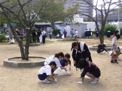 小学校と協力して、地域の清掃を行いました。