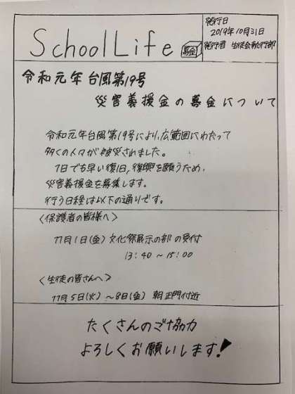 詳しくは本日配布のSchool Lifeをご覧ください。