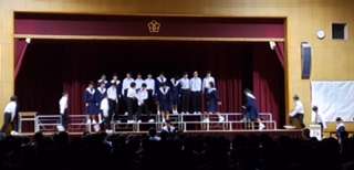 プログラム5番 1年生の発表 歌でつなごう令和の輪 が始まりました。