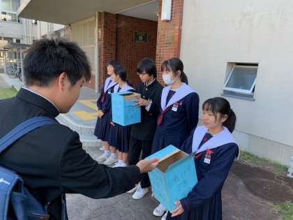 本日11月5日(火)から11月8日(金)まで、朝に生徒会執行部が台風第19号の義援金の募集を行っています。