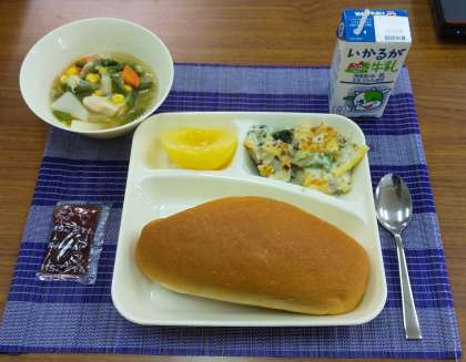 スープ煮(鶏肉、だいこん、キャベツ、にんじん、三度豆、コーン)
