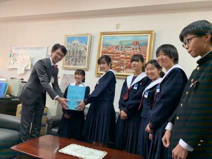 昨日、生徒会執行部より西原区長に集まった義援金をお渡しました。