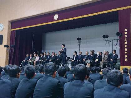 最初に校長先生のお話があり、住之江区長西原様やPTA会長清水様からもお祝いの言葉をいただきました。