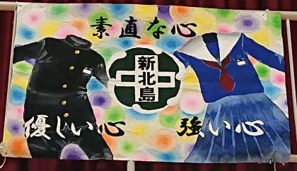 また、体育館のギャラリーに飾られていた旗は、美術部が落成式にむけて作ってくれたものです。