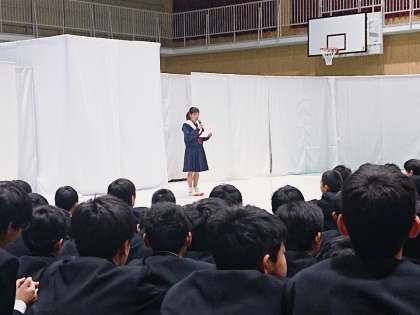 また、本日の司会は、生徒会のメンバーがすべて行い、生徒会会長があいさつを行いました。