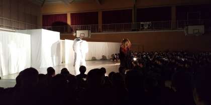 体育館中が一気に劇の世界観に変わり、生徒のみなさんも楽しく鑑賞できているようでした。