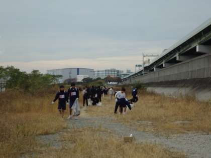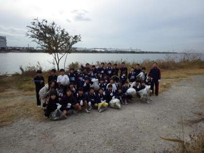12月7日(土)の午後に、陸上競技部・外国語部・科学技術部合同で、大和川河原でのスポーツゴミ拾いを実施しました。