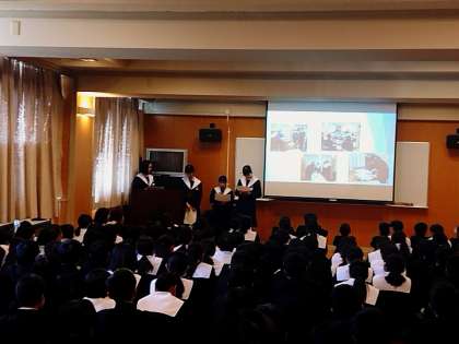 衛星面で、手の洗い方を丁寧に教えていただきました。普段の自分たちの手洗いの方法と違い本当にきれいにする方法を知れたので、風邪の予防のために今後も実践していきたいです。