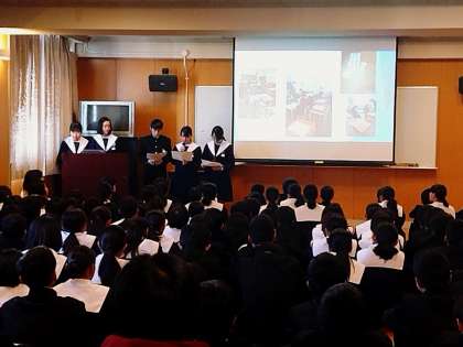 今回の発表会で使ったパワーポイントは学級代表の二名が作成してくれました。また、会場の並び方なども指揮してくれ、生徒で作り上げた素敵な発表会になりました。学級代表のみなさん、おつかれさまでした。