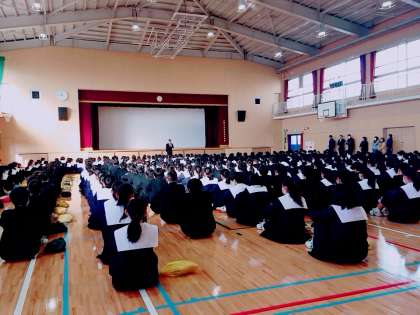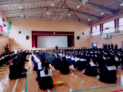 本日、体育館で二学期の終業式が行われました。