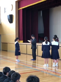 全校集会で表彰されました。
