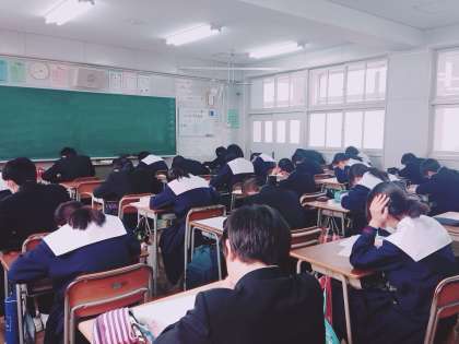 三年生がいよいよ私立入試という事で、二年生のみなさんは、実際に三年生がといた実力テストの過去問題に挑戦してみました。