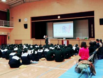 本日、5、6限に体育館で「薬物乱用防止教室」が行われました。