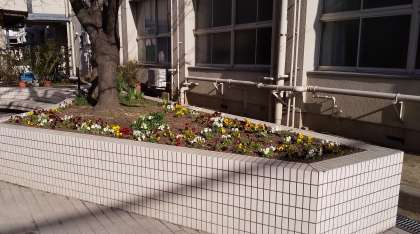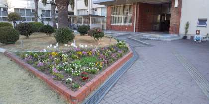 2月末に実施予定でした「ふれあい緑化活動」も行えなかったため、職員のみなさんが玄関や中庭にお花を植えてくださりました。入学式ごろにはさらに大きく花を咲かせてくれることでしょう。授業の再開が待ち遠しいです。