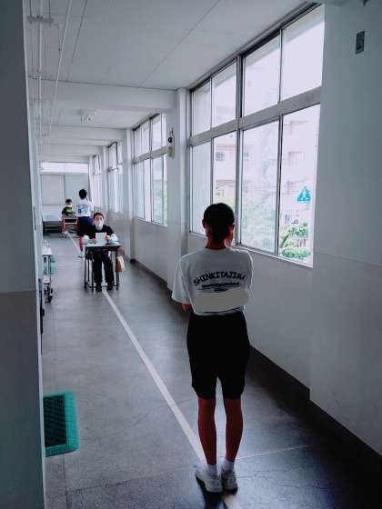 視力検査は、教室前の廊下で一人ずつ行いました。
