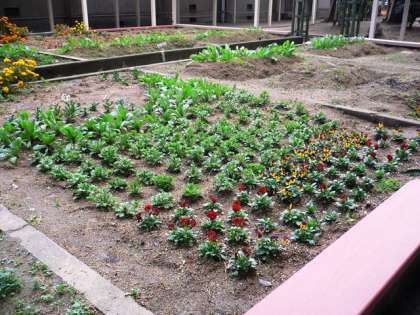 ふれあいガーデン 苗花をポットからガーデンに移して