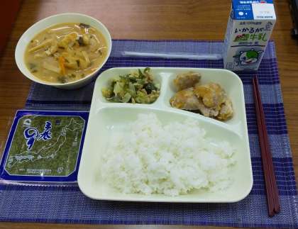 みそ汁(うすあげ、だいこん葉、にんじん、玉ねぎ、じゃがいも)