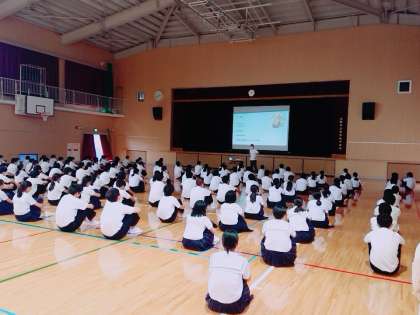 三年生は、本日6限に体育館で進路講話を行いました。