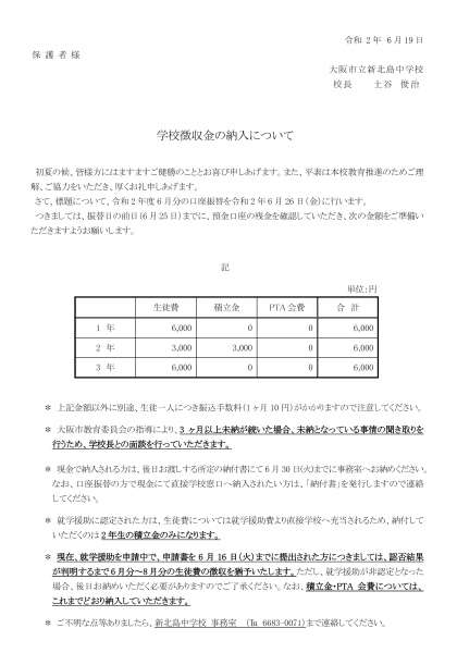 学校徴収金の納入について(6月分)
