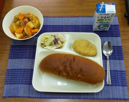 ケチャップ煮(豚肉、にんじん、玉ねぎ、じゃがいも、トマト、さんど豆)