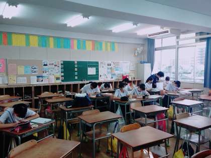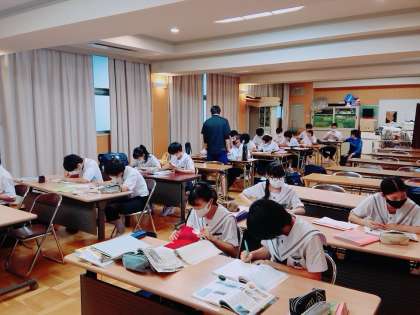 みなさん、お互いに教え合うなどして熱心に勉強していました。